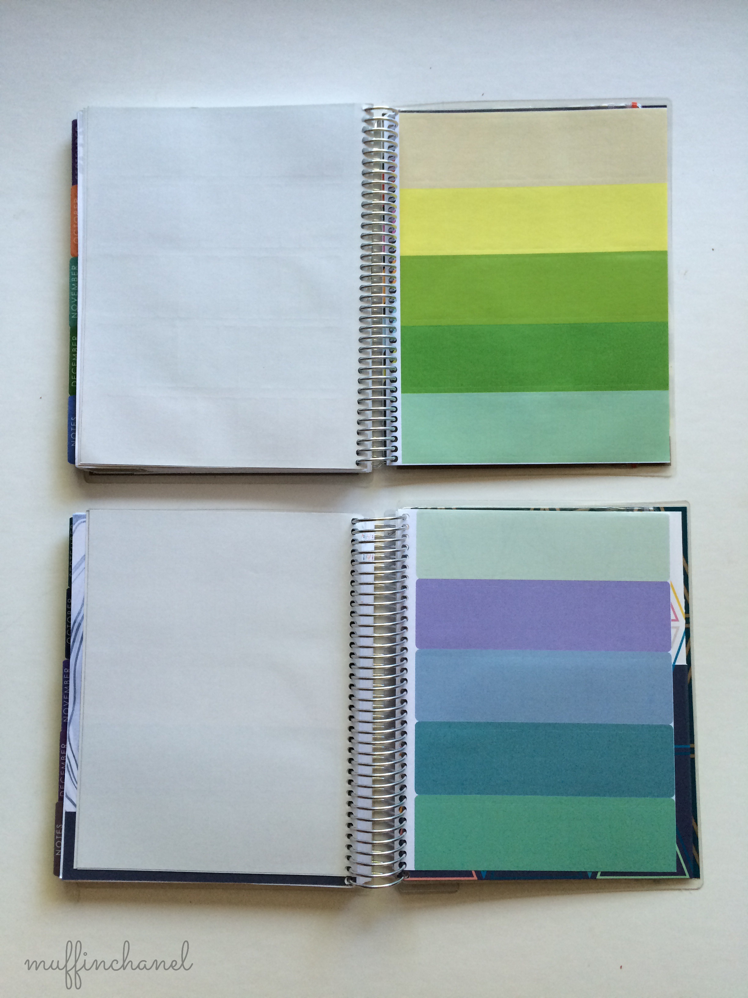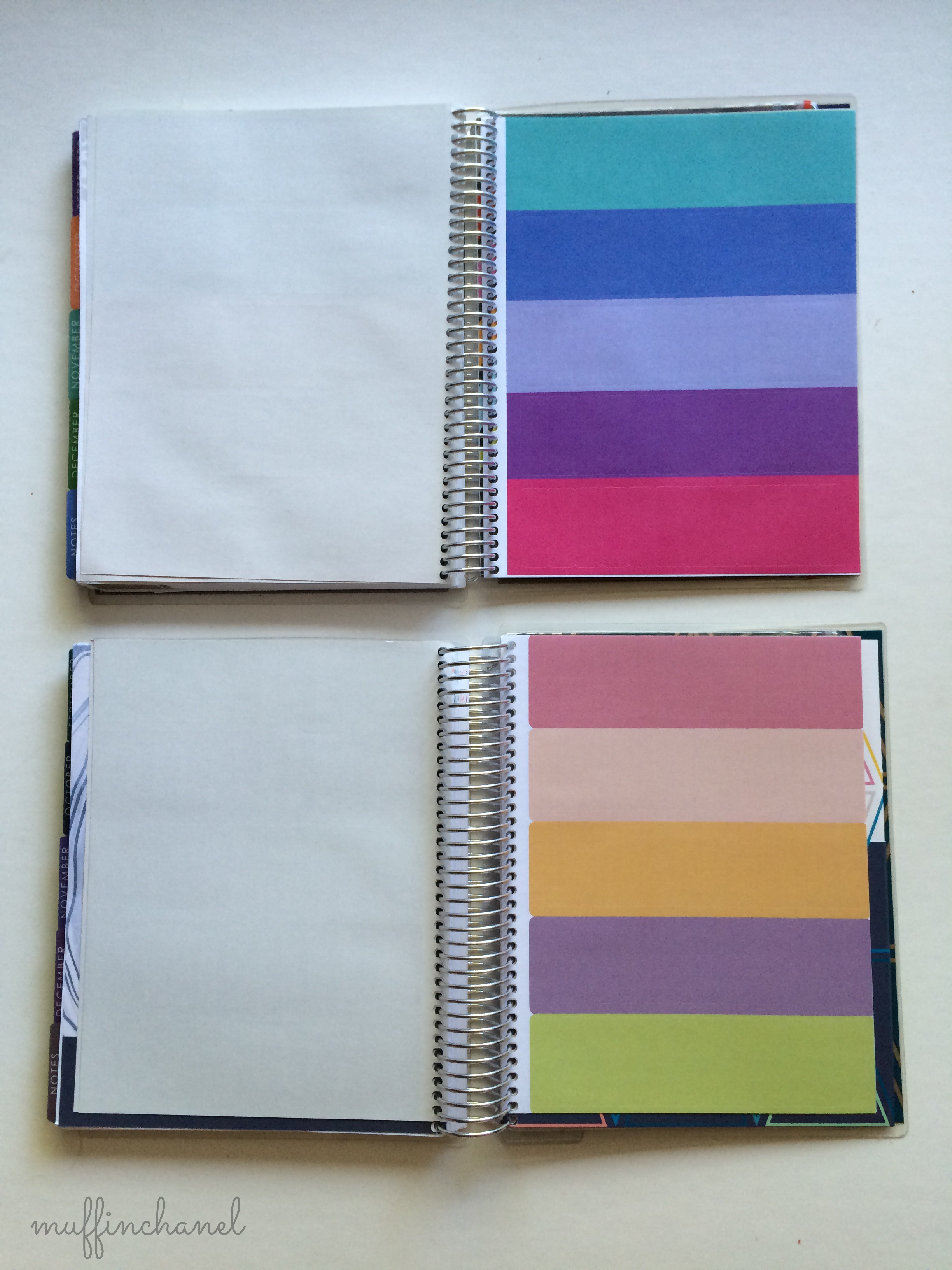 One of the very first things I noticed about this new 2016 planner vs. previous Erin Condren planners is that the spiral binding is larger. It still feels super sturdy — not going to bend or come uncoiled in your bag, but now it’s pretty big. Here is a comparison with my 2015 Life Planner.