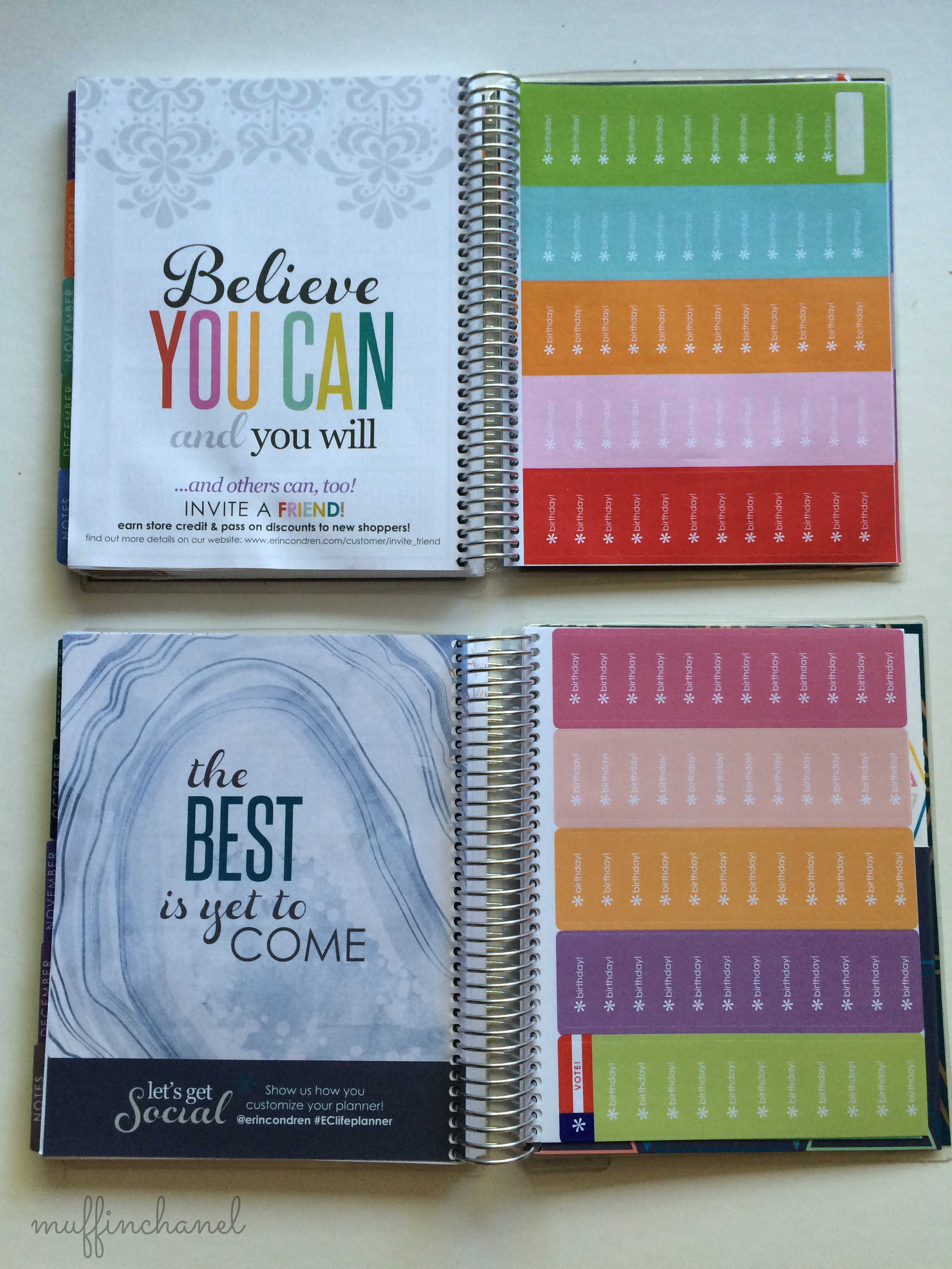 Finally, my Life Planner arrived! YAY!! I personalized it with “MC” for MuffinChanel & I love it. The metallic planners also come with the elastic bands that help to hold you planner closed which is definitely a nice perk. Even though it’s not 2016 yet, here is my Erin Condren 2016 Life Planner Review: