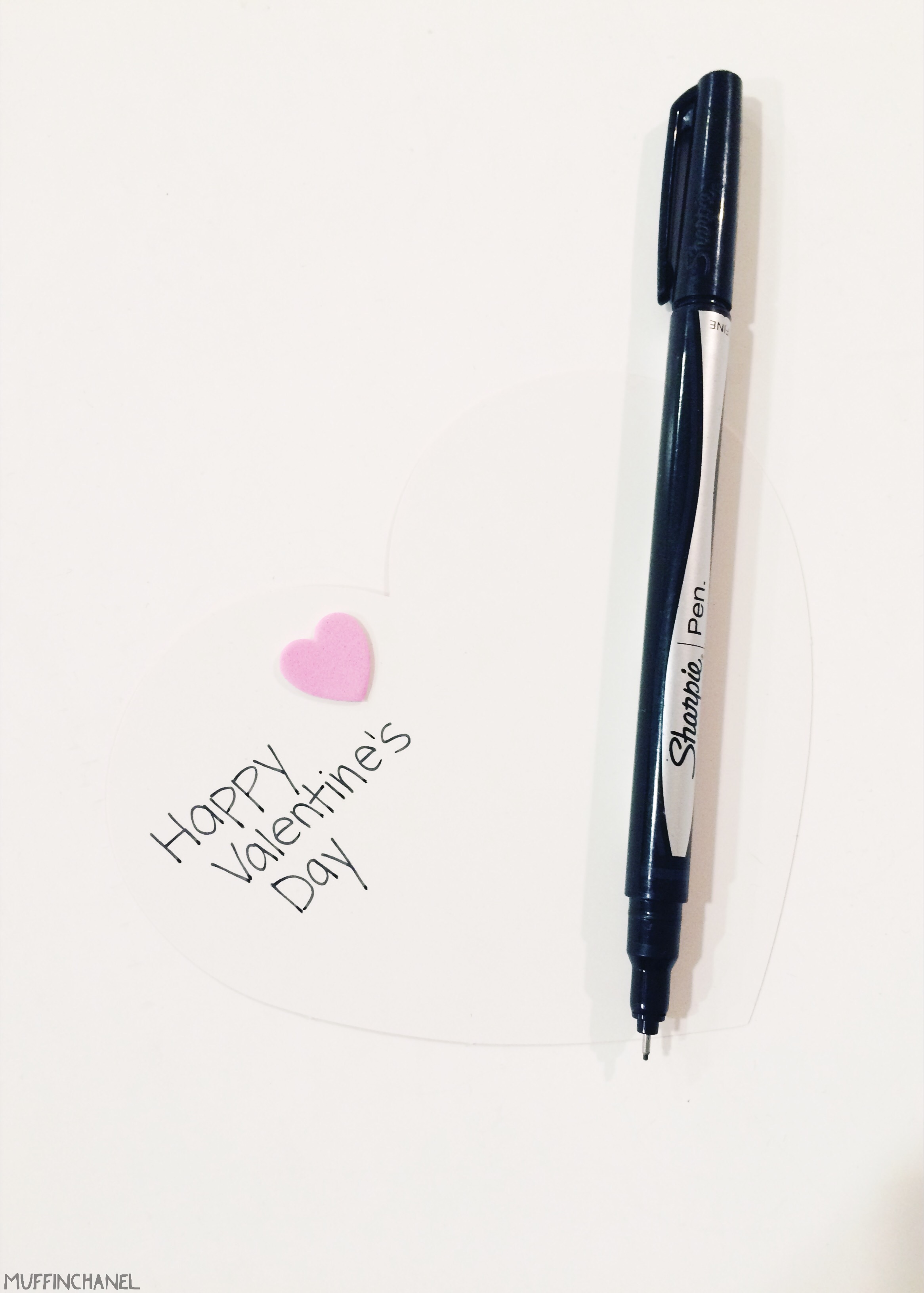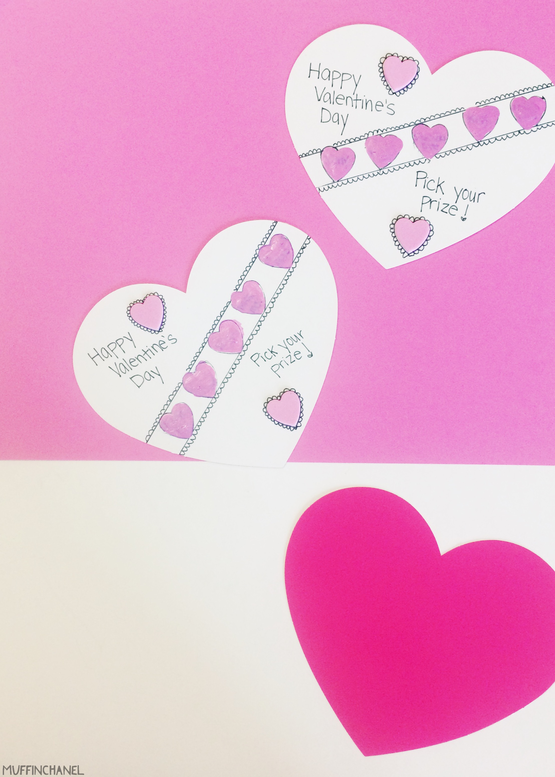 I found these cute little cardstock-type heart cards at Target that I thought would be perfect as the base for my scratch off Valentine’s Day card. I just wrote ‘Happy Valentine’s Day in the corner so I would still have room for my scratch off hearts.