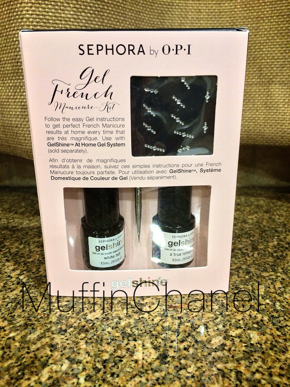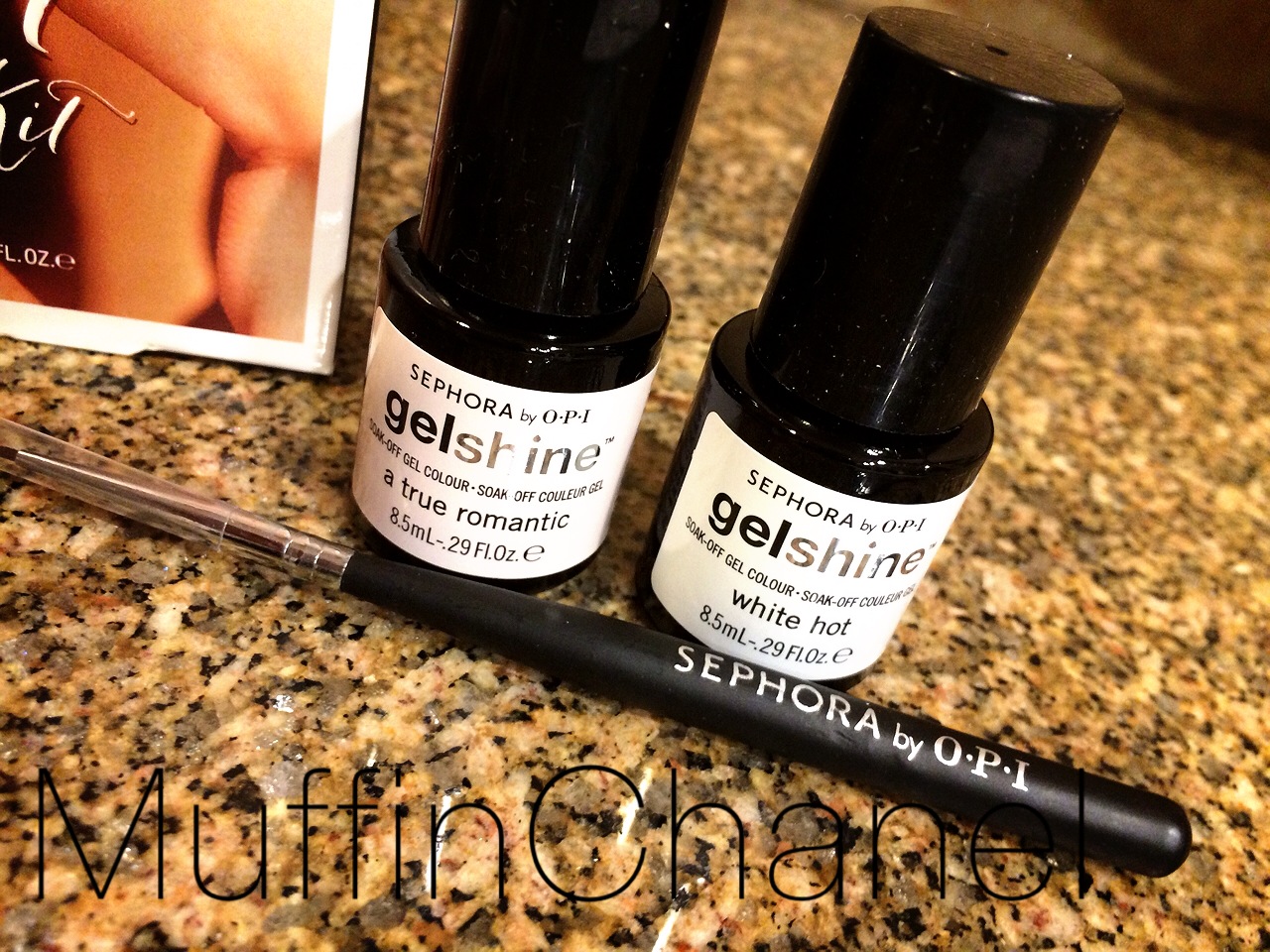 I selected this kit because it was a great value as well. Also Limited Edition, it comes with 2 gel polishes (White Hot and True Romantic), nail decals, and a applicator tool.